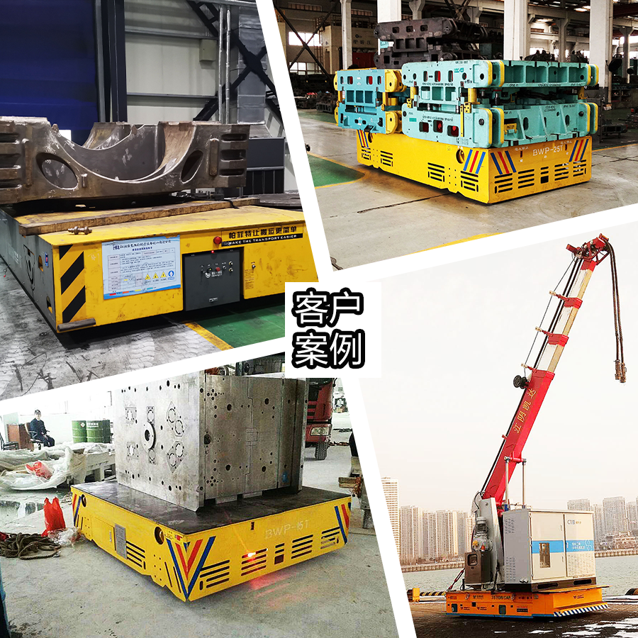 BWP系列电动平车以铅酸蓄电池为能源,以控制模块为控制核心,以操作手柄和遥控控制为输入手段,以台面负载货物,以转向轮导引方向并和固定轮共同承载重量,以电机提供原始动力,以减速机放大扭矩并提供给固定轮动力,以LED声光报警器为工作和警示标志,以智能充电机为外部电源输入。在以上的功能配合下,共同组成BWP系列电动平车的工作能力。客户案例