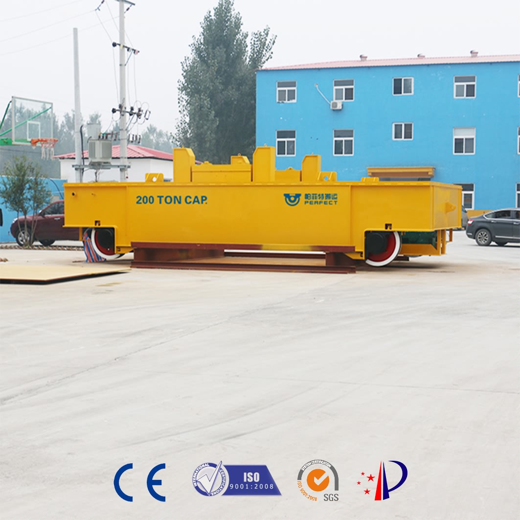钢包车也是电动平车的一种特殊车型,因要运输高温钢包,所以制造工艺上会有不同。