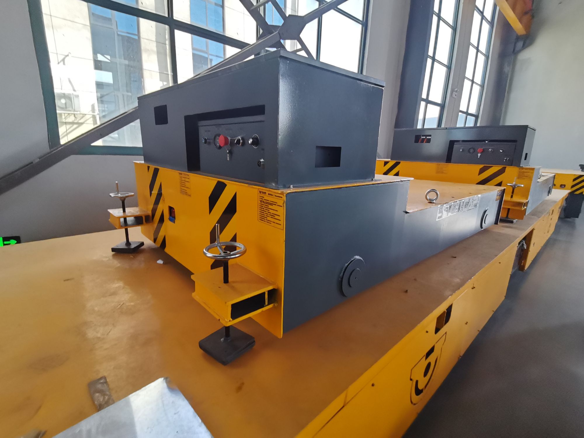 需要一台锂电池供电,遥控器控制,轨道车,声光报警,配有智能充电机,方便操作的搬运车
