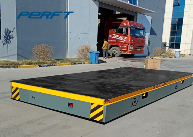 该公司购买无轨平车主要进行运输钢结构式的小房子,采用行车吊装起来不方便由于太大,采用无轨平车转弯灵活,使用方便