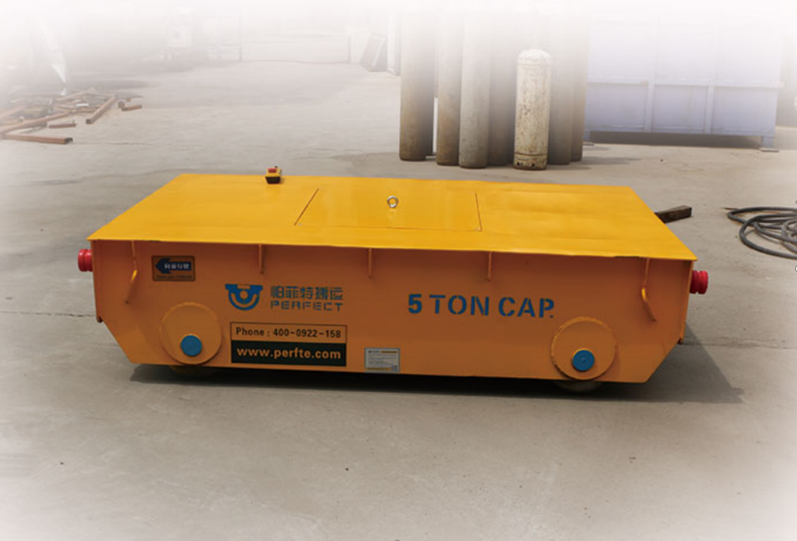 载重量5t,台面厚度8mm,小车尺寸2000*1500,轨距是1250mm,车轮采用铸钢车轮,蓄电池供电,无线遥控控制,速度可调