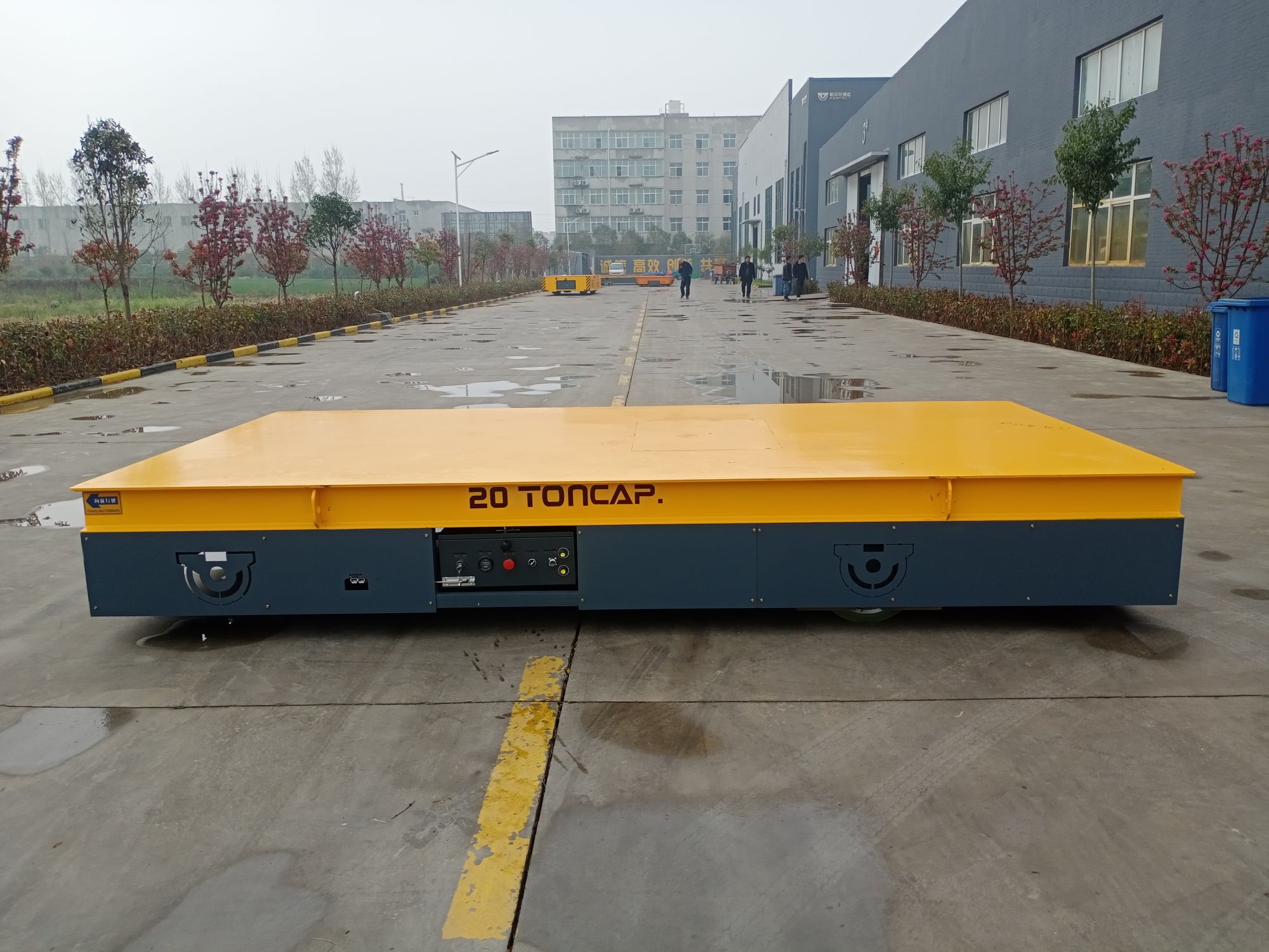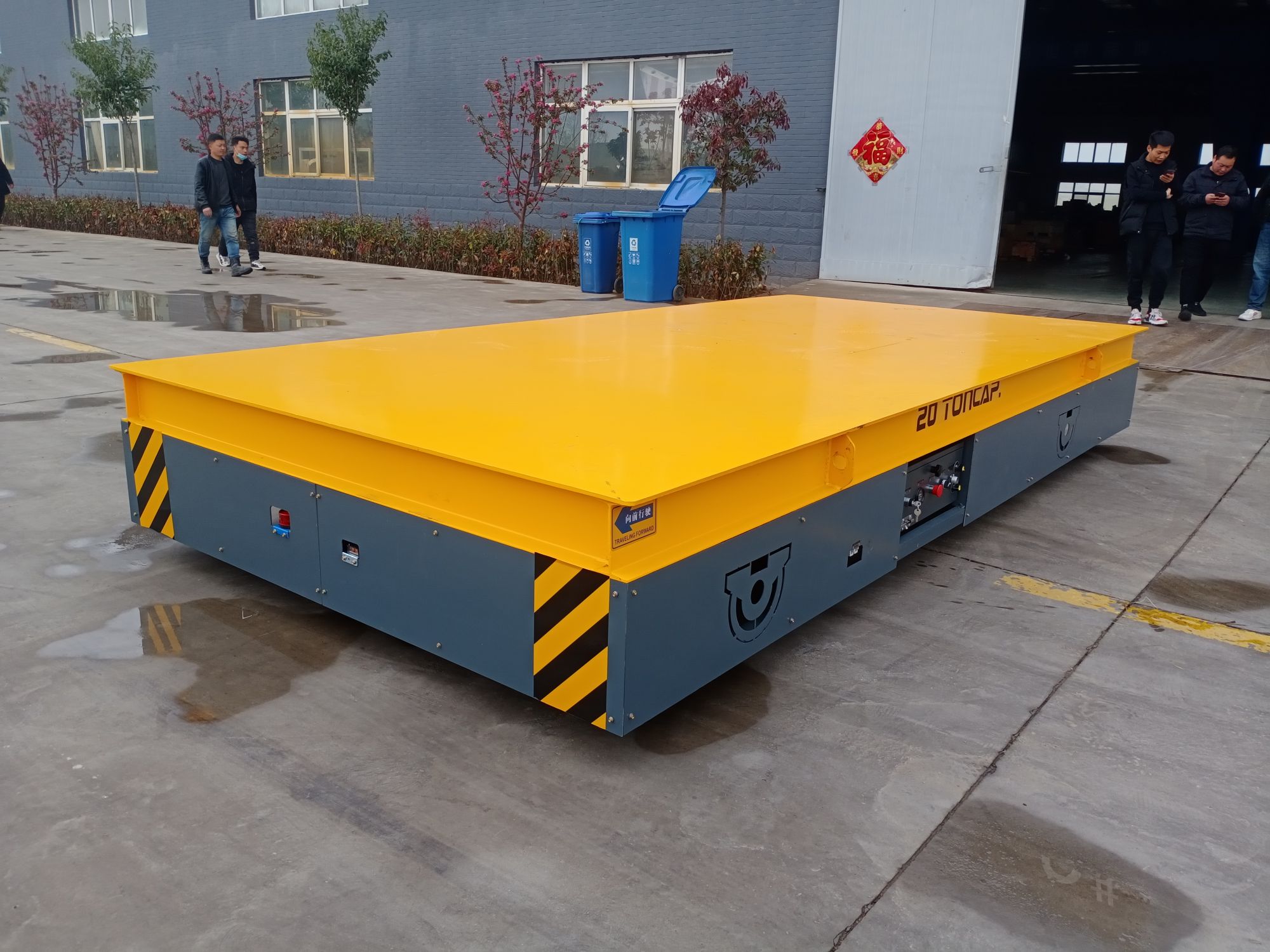 客户这边是搬运大物件,在车间来回转运,因为使用频率高,叉车搬运不了大物件,所以采用无轨搬运平板车