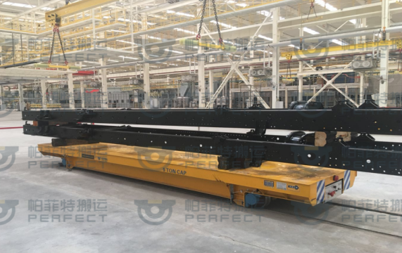要求载重120吨,可以前进后退进出喷砂房,上层还有旋转平台,可以进行旋转。