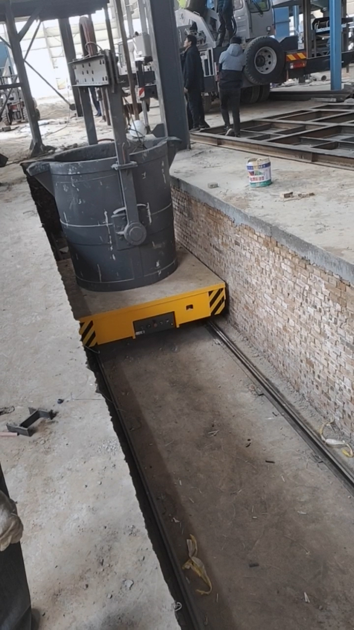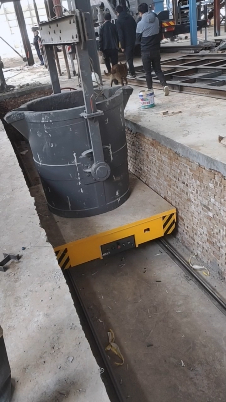 港澳新彩山西泰鑫源铸业有限公司,该上产线为新建项目,投资1.3个亿,采购我司1台蓄电池轨道车+转盘地坑中使用,工况使用情况:蓄电池轨道车+转盘在地坑中使用,车体运载钢包(内有钢包水)转运到模具传送带处,浇馍成型。工作频率60分钟1趟,全年不停燃烧炉,倾倒钢水过程中,空气中铁粉尘大,钢包温度高,2个特殊情况。需要蓄电池轨道车防爆处理(防爆电器箱,防爆电机,布线不外露防护,车体台面铺耐火土)免维护电池1备1用,确保车子动力电源。