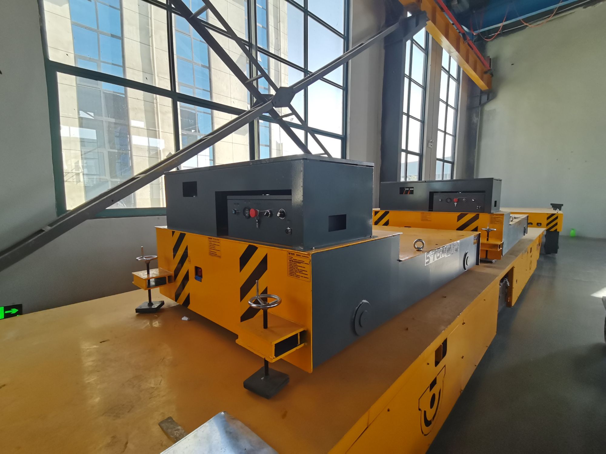 锂电池供电,遥控器控制,轨道车,声光报警,配有智能充电机,方便操作的搬运车。