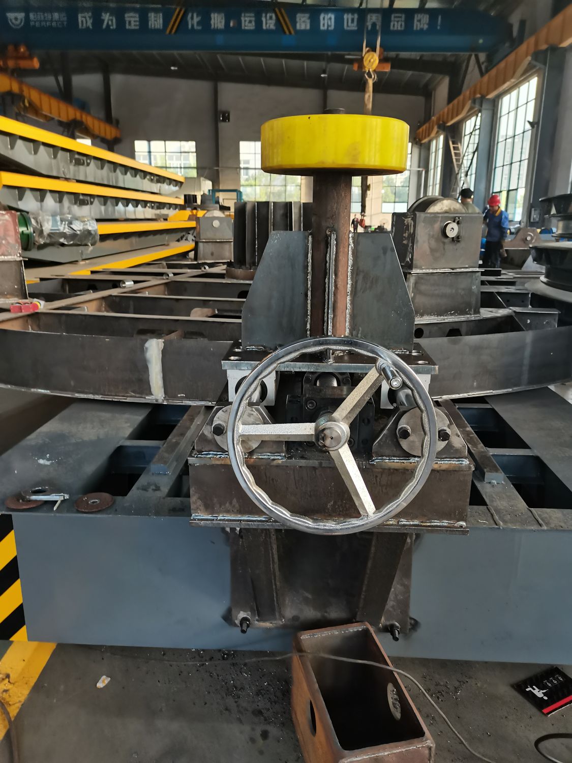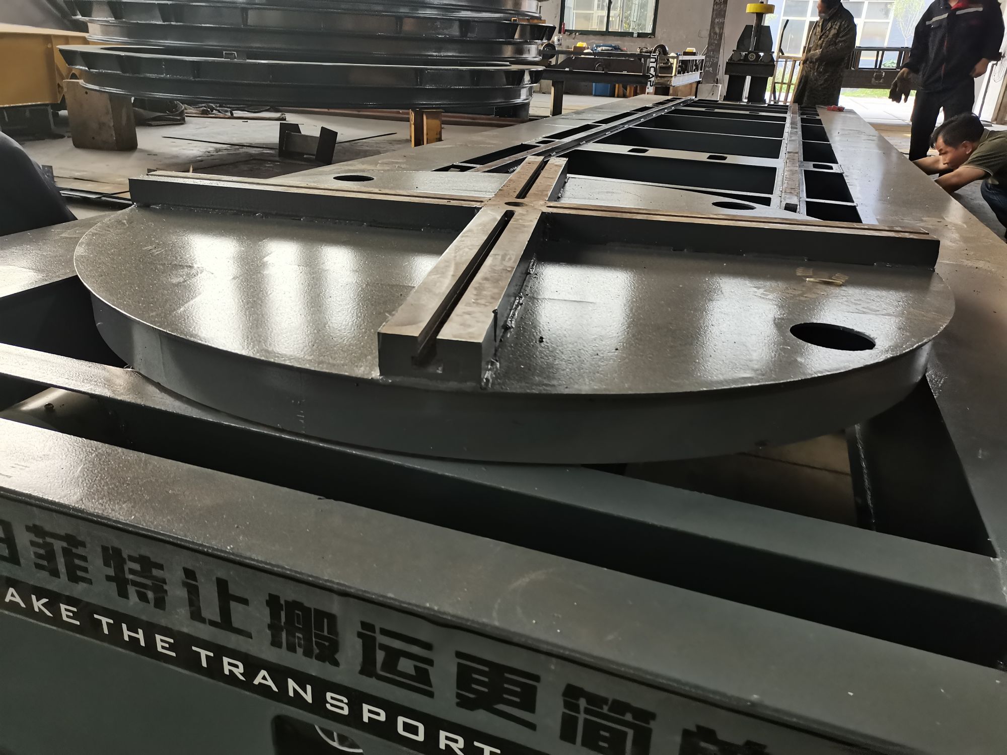 河南帕菲特为客户项目工程中提供的一套设备,要处理的事不同直径长度的筒体,车体台面设有电动滚轮架,防窜动端部定位轮,镂空台面方便砂粒堆积,是一套专用定制设备。。