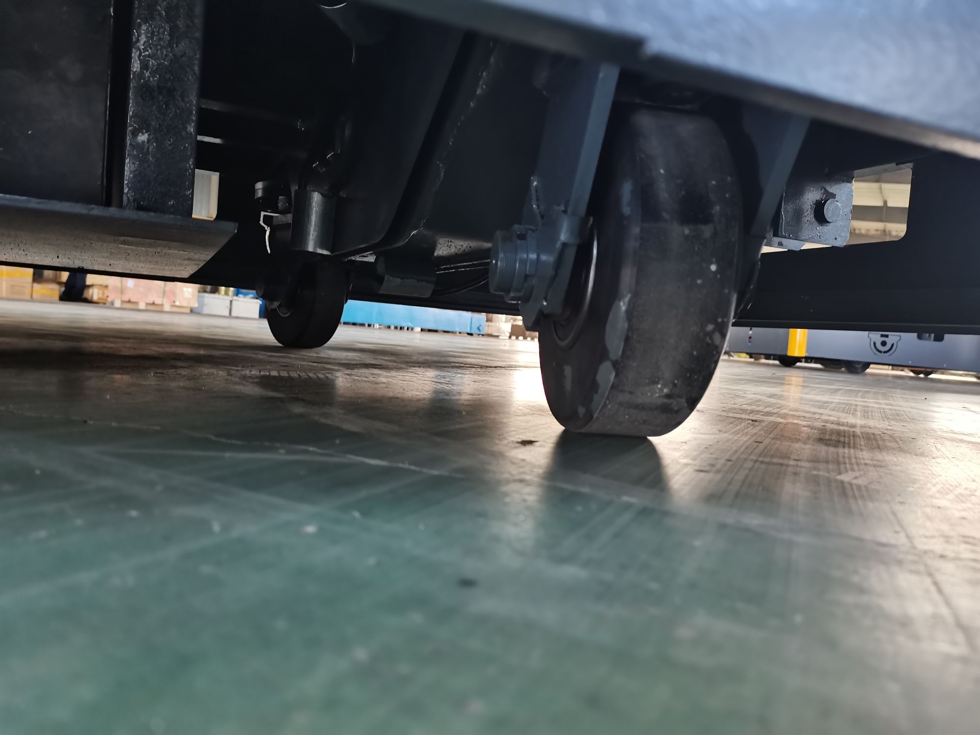 台面要求3500*1600*450,载重量5t,运行方式可以前进后退,边走边转弯,可以原地旋转。台面上加不锈钢花纹板。