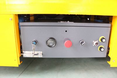 遇人遇障碍物停止、急停按钮,声光报警、前进、后退、左转、右转、原地360度旋转,现场运输频率教高,考虑成本的问题,不加大电池容量,增加一组备用电池。