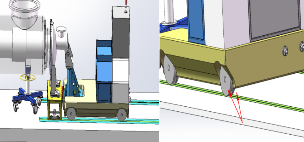 港澳新彩轨道车推送机械精准对接,该车情况比较特殊,精度及外形要求较高,车轮为定制车轮,轨道车在行走过程中可自动调整精度。整车高度300mm,车体四周尖角倒圆角R8-R10、避免碰伤,撞伤工作人员。遇人遇障碍物停止、急停按...
