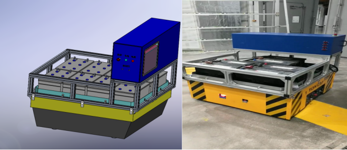 客户在台面预留孔位,方便客户后期加装铝合金架,上面整铺蓄电池,辅助其他设备移动性能检测。