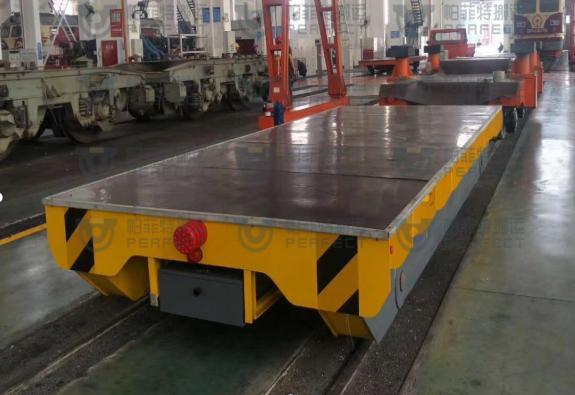 轨平台车是一种采用强度高的聚氨酯橡胶轮或实心橡胶轮胎做为驱动轮和承载轮,实心包胶车轮直接在地面行走的转运车,防止地面受损坏,其运行不受限制,360°原地转弯适应狭小的空间运行,360度防护、遇人自动停止等功能,解决了运行过程中的安全问题。触摸屏、摇杆操作等设计使操作更加人性化。全自动化无人操作的功能让它更加方便,适应爬坡、防爆、粉尘等各种场合,1-150T大载重无轨搬运车是车间搬运重要设备。