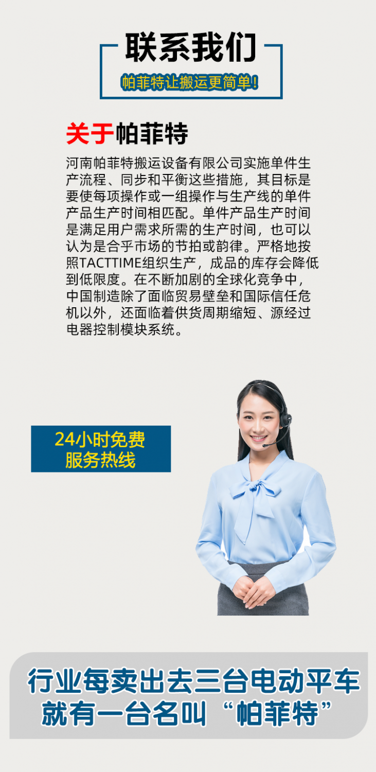 BWP系列电动平车以铅酸蓄电池为能源,以控制模块为控制核心,以操作手柄和遥控控制为输入手段,以台面负载货物,以转向轮导引方向并和固定轮共同承载重量,以电机提供原始动力,以减速机放大扭矩并提供给固定轮动力,以LED声光报警器为工作和警示标志,以智能充电机为外部电源输入。在以上的功能配合下,共同组成BWP系列电动平车的工作能力。操作方式
